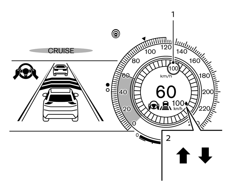 To accept the newly indicated speed limit, perform the RES+ operation (in case of speed limit up) or SET- operation (in case of speed limit down).