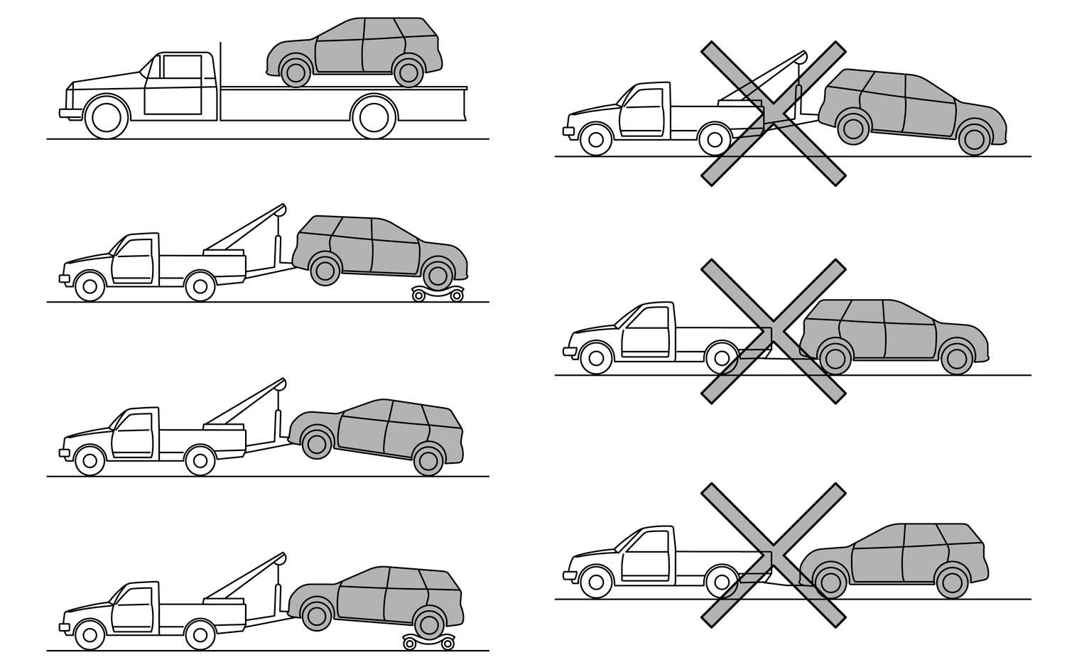 If the electronic parking brake is released, the rear wheels can be grounded while towing. If the electronic parking brake is not released, towing dollies should be used. For additional information, refer to